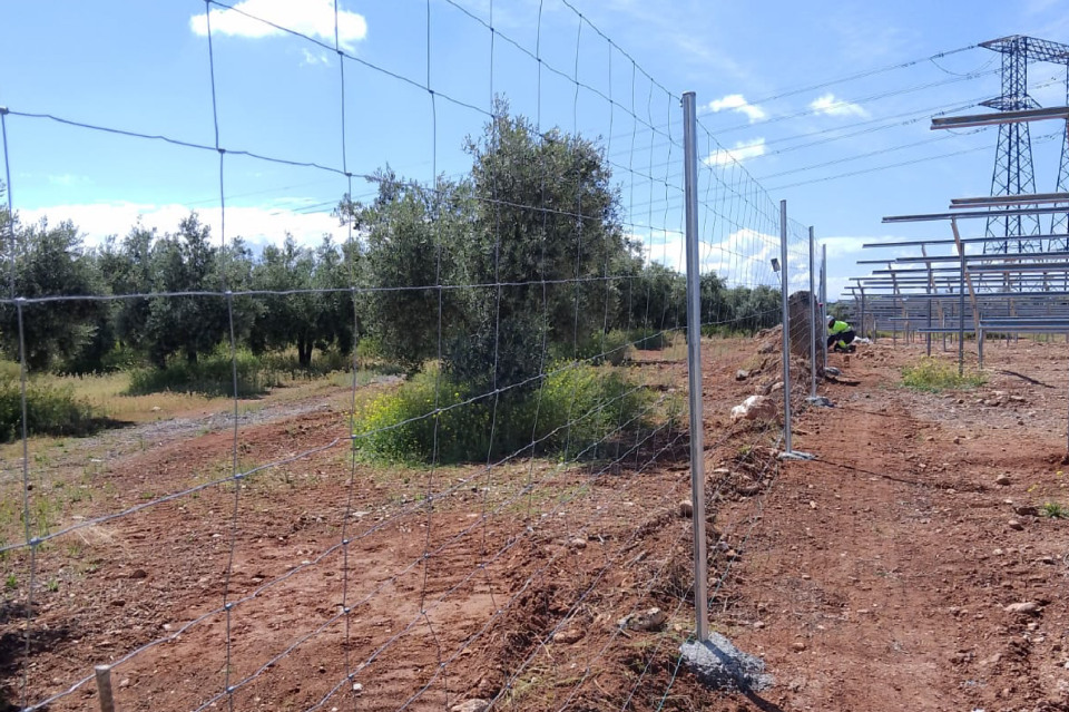 Se llevó a cabo la ejecución del vallado cinegético perimetral. Este tipo de vallado, está especialmente diseñado para impedir el paso de animales. De esta manera no solo protege las estructuras físicas, sino que también asegura que la planta funcione sin interrupciones.